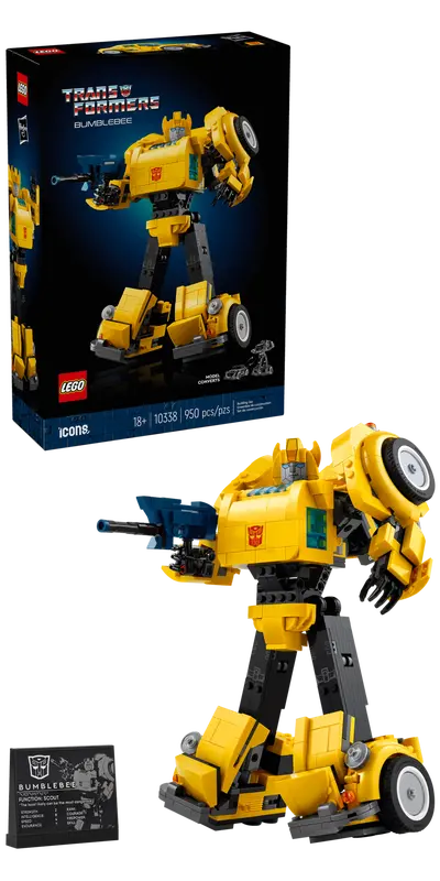 Rekindle your passion for the Transformers universe with this LEGOĀ® Icons Transformers Bumblebee (10338) building project for adults. Craft a meticulously detailed model of the iconic 1980s robot action figure that converts from Autobot to vehicle mode. The Autobot comes with articulated joints, an ion blaster and a jetpack. A display plaque listing power statistics adds the finishing touch for a captivating display.