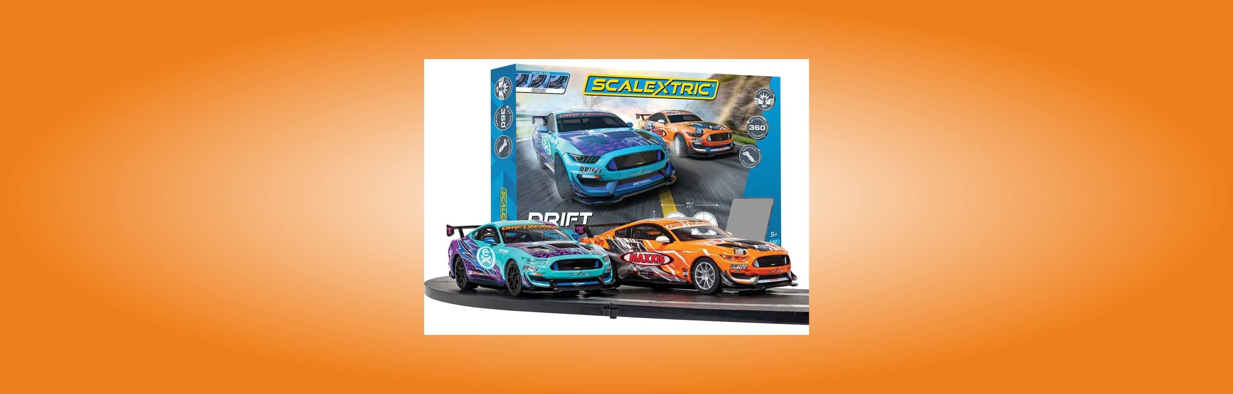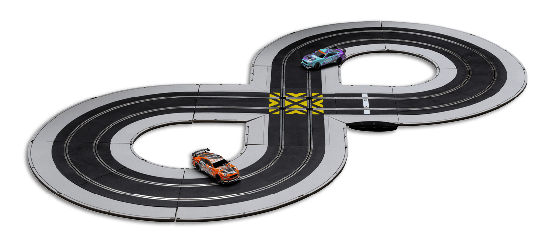 Race two Ford Mustang GT4 cars around a figure of eight track in this Drift 360 race set. Take on your opponent in a full-on, door bashing, side-by-side duel but watch out at the crossroads where you can make a 180 or 360 turn to confuse your adversary and impress the spectators by drifting into the bend and power sliding out!